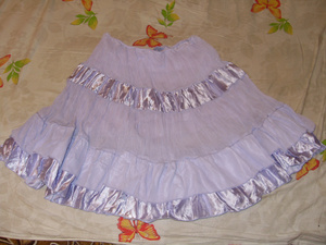 1. Юбка Gloria Jeans. Лёгкая, лавандового цвета. Материал - шифон с шёлком. Состояние отл. На резинке. Длина 45 см. Размер 42-44. Цена 500 р.