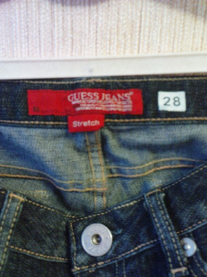 Джинсы Guess, куплены в США. Штанина - bootcut. Размер 28 (можно даже и 29), российский - 44-46. На рост до 165 см. Очень хорошее качество, очень хороший вид сзади ;). Надевала всего пару раз - не подходит размер.
