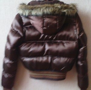 Куртка (синтепон) шоколадного цвета, р-р 42-44, длина - 55 см, рукав - 57 см. Куплена в США, надевала только 1 раз - не подошла по размеру.
