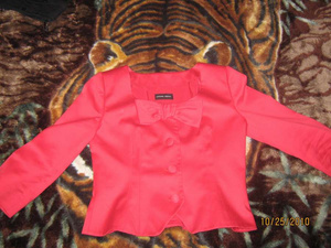 Кукольный красненький пиджак, надела 1 раз, размер 42-44, длина 50 см, 1200 р, возможен небольшой торг.