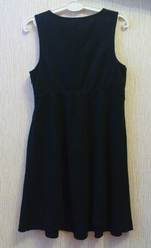 Черный сарафан из хлопка, р-р 44-46 (молния на боку). Длина - 85 см. Смотрится очень мило, юбка расширяется от груди (подойдет и беременным). Носила недолго - перестал подходить по размеру.