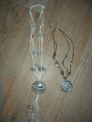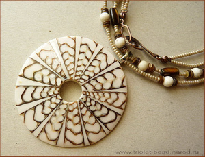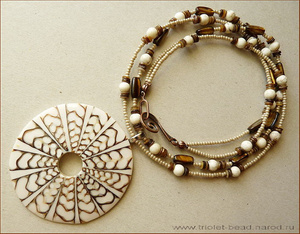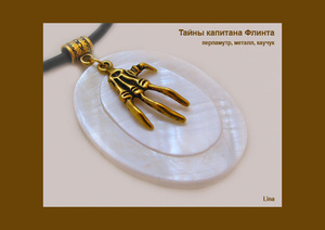 Кулон из сливочно-светлого перламутра с подвеской. Навевает ассоциации с тайнами, островом сокровищ, пиратами..:)