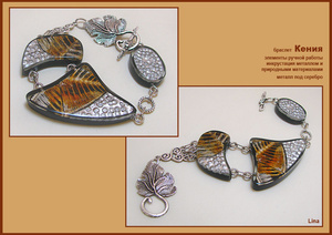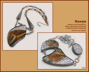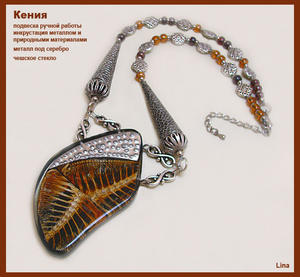 Здесь использованы элементы ручной работы, инкрустированные металлом и природными материалами; металл под серебро и чешское стекло.
