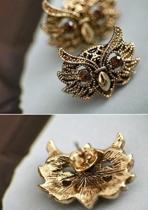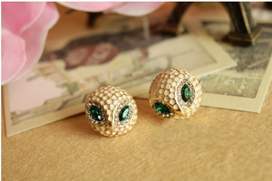 Серьги "Rhinestone Green Crystal 18KGP Plated Owl"