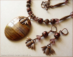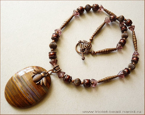 Халцедон Purple Lace, чешское стекло, стеклянный жемчуг, медная фурнитура.