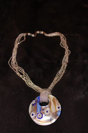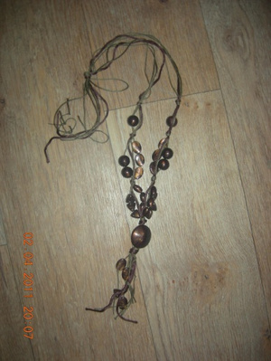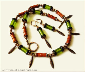 Стекло, бусины из бамбука, медная фурнитура.