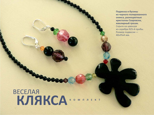 Веселая угольно-черная клякса из оникса в разноцветных брызгах света:-) Колье+асимметричные серьги. Черные ониксы, кристаллы Сваровски размером 4-10 мм, ювелирный тросик. Серьги на швензах-замках из серебра 925-й пробы. Стоимость комплекта - 1350 руб.