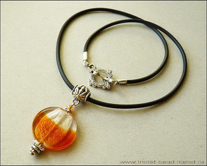 Кулон-лэмпворк с внутренним серебрением, кристалл Сваровски цвета Sun, каучуковый шнур.