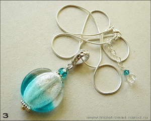 Кулон-лэмпворк с внутренним серебрением, кристаллы Сваровски цвета Indicolite, посеребренная цепочка.