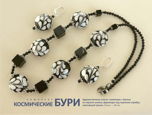 Комплект "Космические бури": художественное стекло «лэмпворк», бусины из черного оникса, фурнитура под черненое серебро, ювелирный тросик. Колье — 46 см. Серьги на швензах-замках из серебра 925-й пробы. Колье — 1050 руб., серьги — 320 руб.