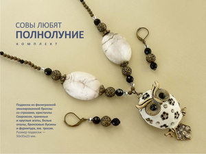 Совы любят полнолуние... Подвеска из филигранной эмалированной бронзы со стразами, кристаллы Сваровски, граненые и круглые агаты, белые опалы, бронзовые бусины и фурнитура, юв. тросик. Размер подвески — 50х35х23 мм. Длина кулона по шнуру – 50 см. Стоимость комплекта — 1200 руб.