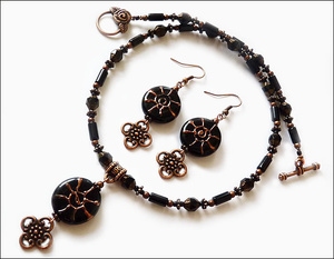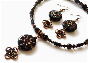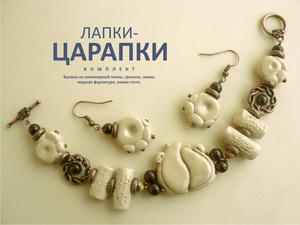 Комплект, навеянный воспоминаниями о совместной жизни с кошкой. Бусины из полимерной глины собственноручной работы, гранаты, яшма, медная фурнитура. Браслет-850 руб., серьги - 200 руб.