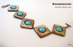 Браслет с перламутром и турквенитом под бирюзу (550).