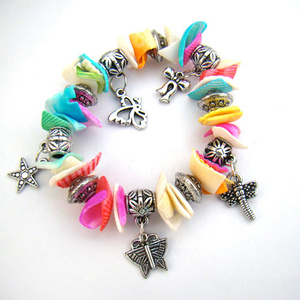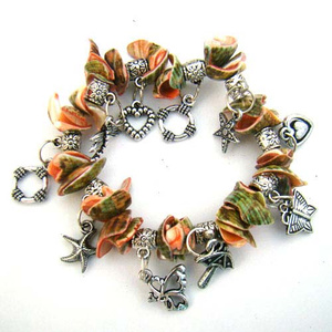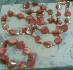 7)Комплект бусы (80 см) +браслет из ракушки с жемчугом - 250 руб. Новые