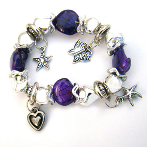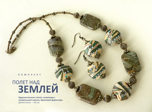 Комплект "Полет над землей": художественное стекло "лэмпворк", натуральный камень, бронзовая фурнитура. 950 руб.