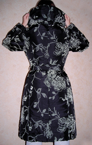 Интересный воротник, который можно присборить(есть специальные шнурочки), есть пояс, внутри рукава - резинка для более плотного прилегания, замок можно расстегнуть как сверху, так и снизу. Есть внутренний карман, боковые карманы на потайных молниях.