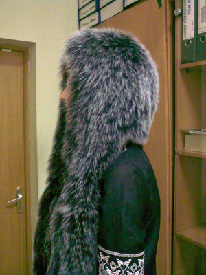 Шапка-капюшон из вязаного песца, новая, 2000 руб.