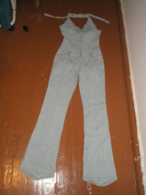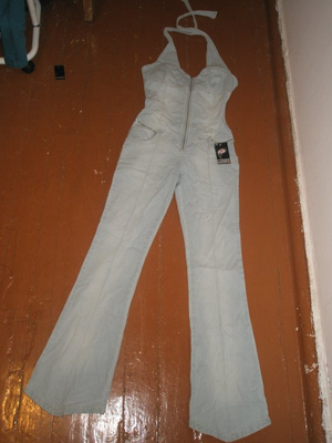 Новый, с этикеткой, джинсовый комбинезон. Светло-голубой. Размер 42-44-46 (кто как любит). Стрейч. Есть маленькое пятнышко. цена 450руб.