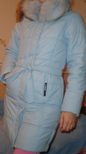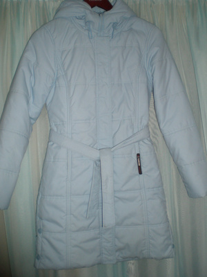 Курточка . Наполнитель -синтепон. р. 42-44. Цвет нежно-голубой. Можно носить где-то до -20. В очень хорошем состоянии. ц.400 р.