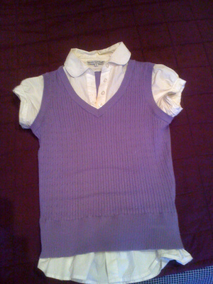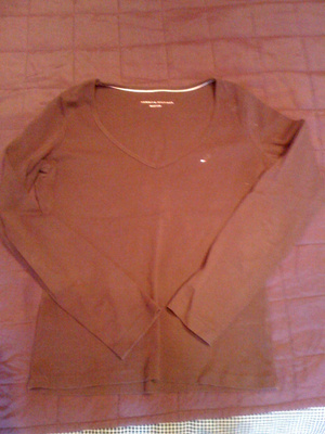 4. Пуловер Tommy Hilfiger. Покупала в Испаниию Цвет фиолетовый, V-образный вырез. Очень качественная и функциональная вещь - носится с любыми брюками. Размер скорее 48. Мне большая. 500 рублей.