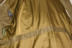 Цвет оливковый (на фото рыжеватый получился), с отстегивающимся капюшоном, встроенный пояс, верх с тефлоновым покрытием от Do Pont- грязь не пристает, не намокает, не продувается, в нем не задыхаешься. Рукава без манжет. Внутри карман для телефона.