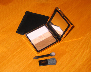 YSL Палетка для макияжа Символы Востока. Пудра с мерцающими частичками 2 цветов и матовые коричневые тени. У меня много косметики, зачем эту палетку покупала - не знаю... от жадности. Очень приятная штука, но у меня лежит без дела. Пользовалась 1 раз.