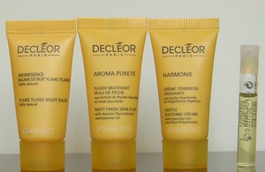 Набор пробников кремов Деклеор: ночной бальзам иланг-иланг 5мл, матирующий крем 5мл, крем для чувствительной кожи 5мл, 100% концентрат нероли 1мл. Кучка за 450.