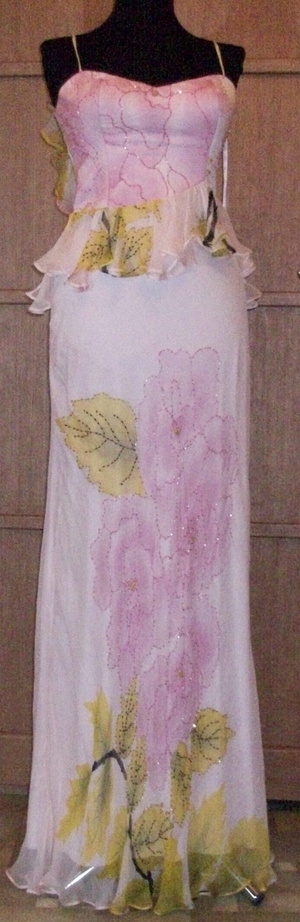 Мечта. Розовая мечта. Платье, в котором не стыдно получить «Оскар». Роскошное, великолепное, изумительное, фееричное, сказочно красивое платье дорогущей марки Nina Austin. Оригинал. Очень женственный силуэт. Красивый нежно-розовый цвет. Кропотливейшая ручная работа: цветочный принт расшит бисером. Платье застегивается на молнию сбоку. С подкладом. Ткань – натуральный шелк. Оно для особых случаев. В нем можно на красную ковровую дорожку или на знаковое торжество. Или вести какую-то церемонию. Учитывая моду на цветные свадебные платья, под венец – тоже. И – сражать наповал! Маркировка XS. Хорошо сядет также на 42 и 44 размер с небольшой или средней грудью. Ограничение – рост. Нужно не меньше 170 см роста. Платье абсолютно новое. Бирки, этикетки, конверт с запасными бисеринками – все при нем. Приехало из США. Такие в интернет-магазинах продаются за 20-30 тысяч.