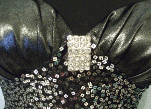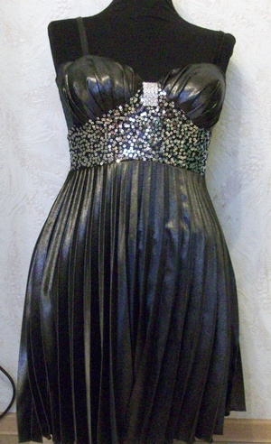 Классное нарядное платье на 42-44 размер. Можно рискнуть померить на 46. Новое. Темно-серое серебристое. Оно из тех нарядов, в которые наряжают манекены - для привлечения клиентов. Очень красивая плотная гладкая ткань с блеском. Однозначно выше колена, но от роста зависит - насколько. Покрой «ампир» - скрывает разные огрехи фигуры. Плиссерованная юбка. Под грудью - отделка пайетками в тон и брошью со стразами. Чашечки у лифа жесткие, рельефные - специально для того, чтобы носить его без бюстгалтера. Все отлично поддерживают. До 2,5 размера груди. Сбоку замок, сзади – шнуровка. К платью прилагается палантин. Смотрится эффектно и дорого. При искусственном освещении - просто ахнуть! Образ аля гламурная ведьмочка. Платье новое. Прошу 2000 рублей.