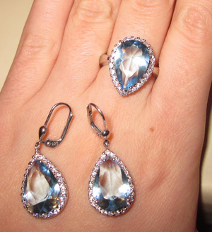 2. Серьги и кольцо с топазами и фианитами. Кольцо р-р 17. Цена кольца 1002р. Серьги- 1485р.