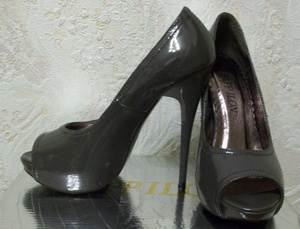 Темно-серые лаковые туфельки на высоченной 13-сантиметровой шпильке. Открытый носок. 35 размер. Производитель PAPPILON. Абсолютно новые. Можно использовать для занятий стрип-пластикой
