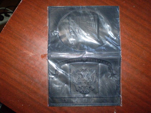 Обложка на паспорт, натуральная кожа. Цвет темно-синий. Новая, в пленочке. Отдам дешево