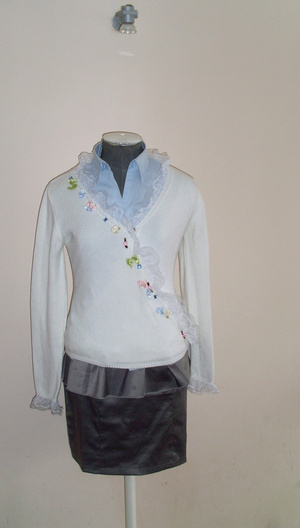 КОФТОЧКА ИЗ ХЛОПКА, кружево можно убрать, оно приметано, все бантики и цветочки- родные, состояние новой, 44-46р-р, 250 руб