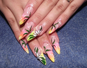 Шедеврально! Как можно попасть к вам на наращивание? Если можно скиньте примерный порядок цен. Очень хочу такие аккуратные ногти :o. Заранее благодарю.мои тропики, прада на типсах, я типсы дешевле делаю, поэтому основной контингент на них)красота какая скольо такие стоят?
