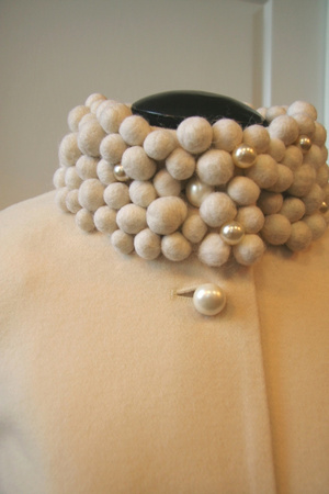У меня такое бежевое пальто. воротник из войлочных шариков с бусинами, рукав 3/4. Да, светлое, маркое. Но оно настолько эффектно смотрится, что я это в расчет даже не беру! Народ оборачивается порой)))
