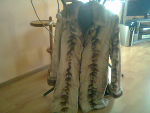 Отдам за 2 хороших горьких шоколадки натуральную дубленку, размер 42-44, цвет-темная вишня, верх покрыт водоотталкивающим раствором, длина выше колен, на молнии.