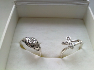 е еще серебряные украшения - кольца по 100р\шт. браслет - 150 р.