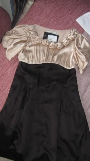 Новое платье для любого случая! Верх украшен шикарными цветами, рукава выполнены в форме фонариков, только это не фонарики, а красиво собранная ткань. Черный низ с карманами, верх бежевого цвета (цвет кофе с молоком).