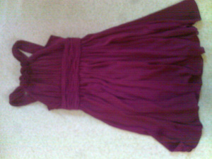 2. малиновое шифоновое платье с подкладом, платье очень нарядное и идеально подходит для праздничных событий, замок сзади. спереди из шифона же сделаны цветы.- покупала в поездке в США, одевалось 1 раз на свадьбу. стоимость 1600 руб. с торгом - это платье и на 46 размер смотрится очень хорошо.