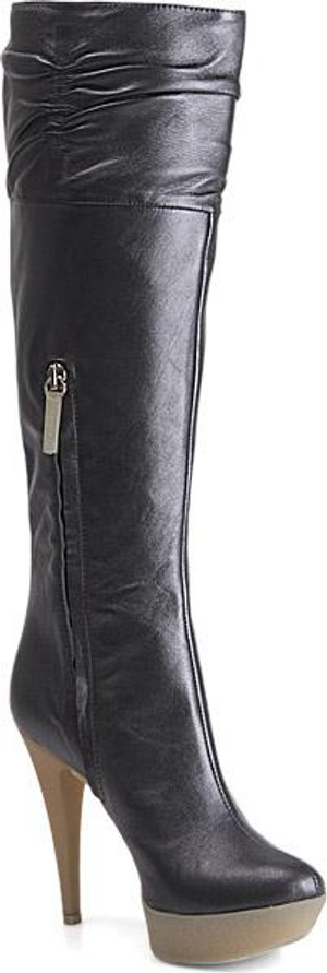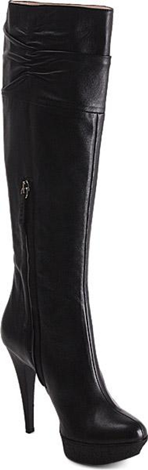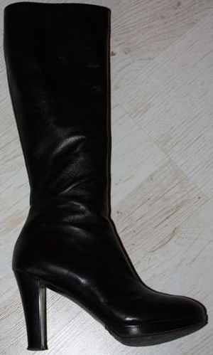 Девочки, а у меня мечта... Может, видел кто. В общем, черные сапоги из гладкой кожи, нос узковатый, но не острый, посередине шов, платформочка максимум 2 см и устойчивый (но не толстый) каблук 7-9 см.А вот такие сапожищи не вписываются в рамки Вашей мечты? Правда у них голенище без резинки и каблук около 10, но колодка весьма и весьма!