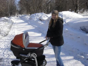 Коляску я с 5 этажа вытащить одна не могу,так хоть так минут по 20-30 прогуливаемся)))
