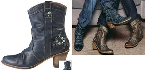 Продам очень классные новые кожаные сапожки в стиле вестерн - Bullboxer. Заказывала из Германии, пришли маломерки((( Цена до скидки - 90 евро без доставки. Цвет темно-синий! Снаружи натур. кожа, внутри хлопок, стелька кожаная. Размер 39 - реально скорее на узкую ножку 38.5, или даже 38. На невысокий взъем! Реально они скорее как на втором фото. Смотрятся очень стильно!!! Очень удобный устойчивый каблук примерно 6 см.