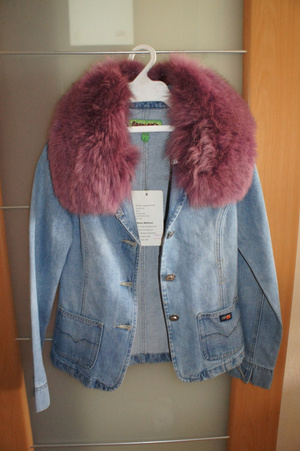 курточка джинсовая с мехом, очень эффектная, новая, с корейского сайта, не подошла по размеру((((((