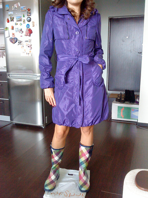 Продам милый плащик фиолетового цвета на подкладе. Абсолютно новый с этикетками. Размер 42-44. Капюшон отстегивается. Цена 3200 руб. Не подошел по размеру(