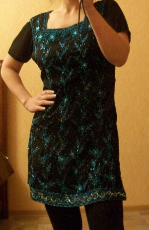 3. Чёрное, спереди с пайетками, сзади нет, короткое. 500р.(турция, стоило 4000р.)