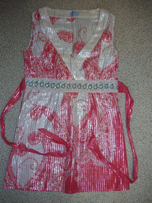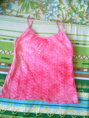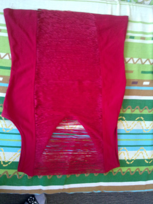 6) маечка красная ( сзади всё увешано ниточками) 150р.