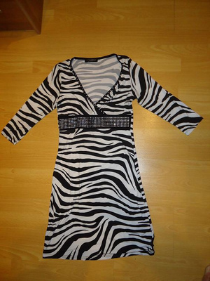 Платье CHANEL,р. 42-44, хорошо тянется, декорировано стразами, к нему прилагается тонкий ремешок,тоже со стразами, одевалось 1раз(видимо "переболела" расцветкой "зебра")