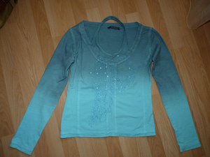 1. Бирюзовая кофточка, надевала несколько раз, стала большой. Размер стоит М, думаю, что на 44, 500 руб.