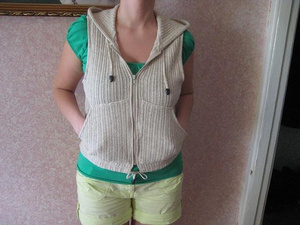 Красивая кофточка.Состояние отличное,размер 44-46. Жилетка из льна,с капюшоном,новая,размер 44-46.Всё по 300 р.