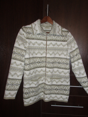 3. Кофта тепленькая, р-р 50 (плюс-минус 1 р-р), состав не знаю, но точно с шерстью, на молнии, заказывала в СП, пару раз одела, поняла, что рукава короткие, состояние новой, 600 р